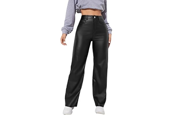 jeans womens store - #1:MakeMeChic Women's High Waist Pockets Straight Leg Jeans Leather Look Pants