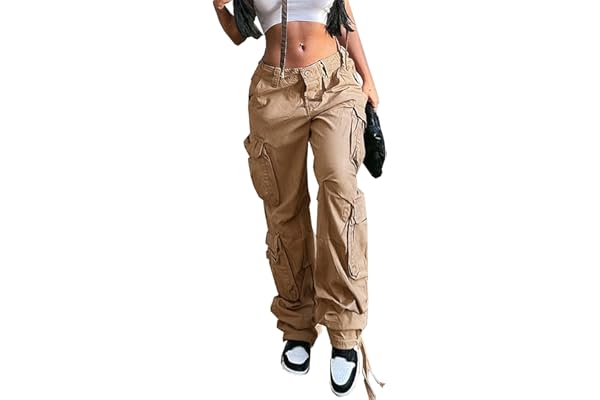 Reviews High Waist Baggy Cargo Jeans for Women Flap Pocket Relaxed Fit Straight Wide Leg Y2K Fashion Jeans