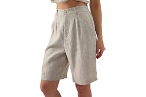 #1:Amazhiyu Womens Pure Linen Summer Casual High Waisted Bermuda Shorts for Lounge Beach