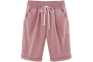 #1:Bermuda Shorts for Women High Waisted Cotton Linen Elastic Drawstring Summer Shorts Casual Loose Fit Dandelion Print
