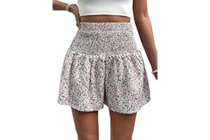 #1:Milumia Women's Boho Ditsy Floral Smocked Wide Leg Shorts High Waisted Summer Shorts