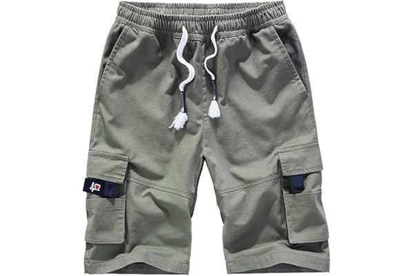 #1:Vcansion Women's Casual Cotton Elastic Waist Drawstring Loose Fit Outdoor Multi-Pockets Cargo Shorts